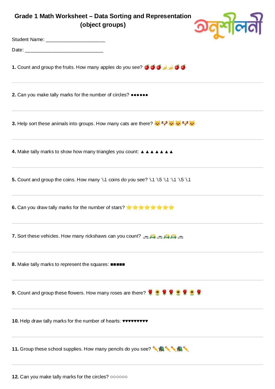 G1-Data Sorting and Representation (object groups)-Count and Group-Tally Table Time