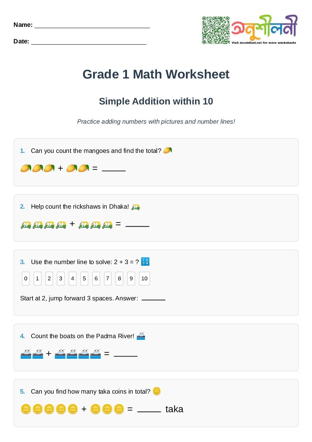 G1-Simple Addition within 10-Add with Pictures-Number Line Jumps