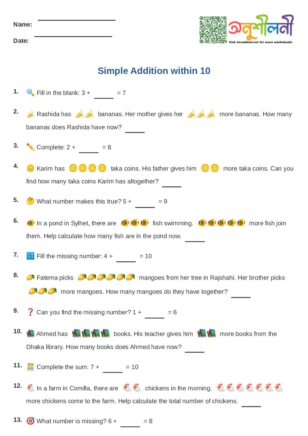 G1-Simple Addition within 10-Fill the Blank-Story Sums