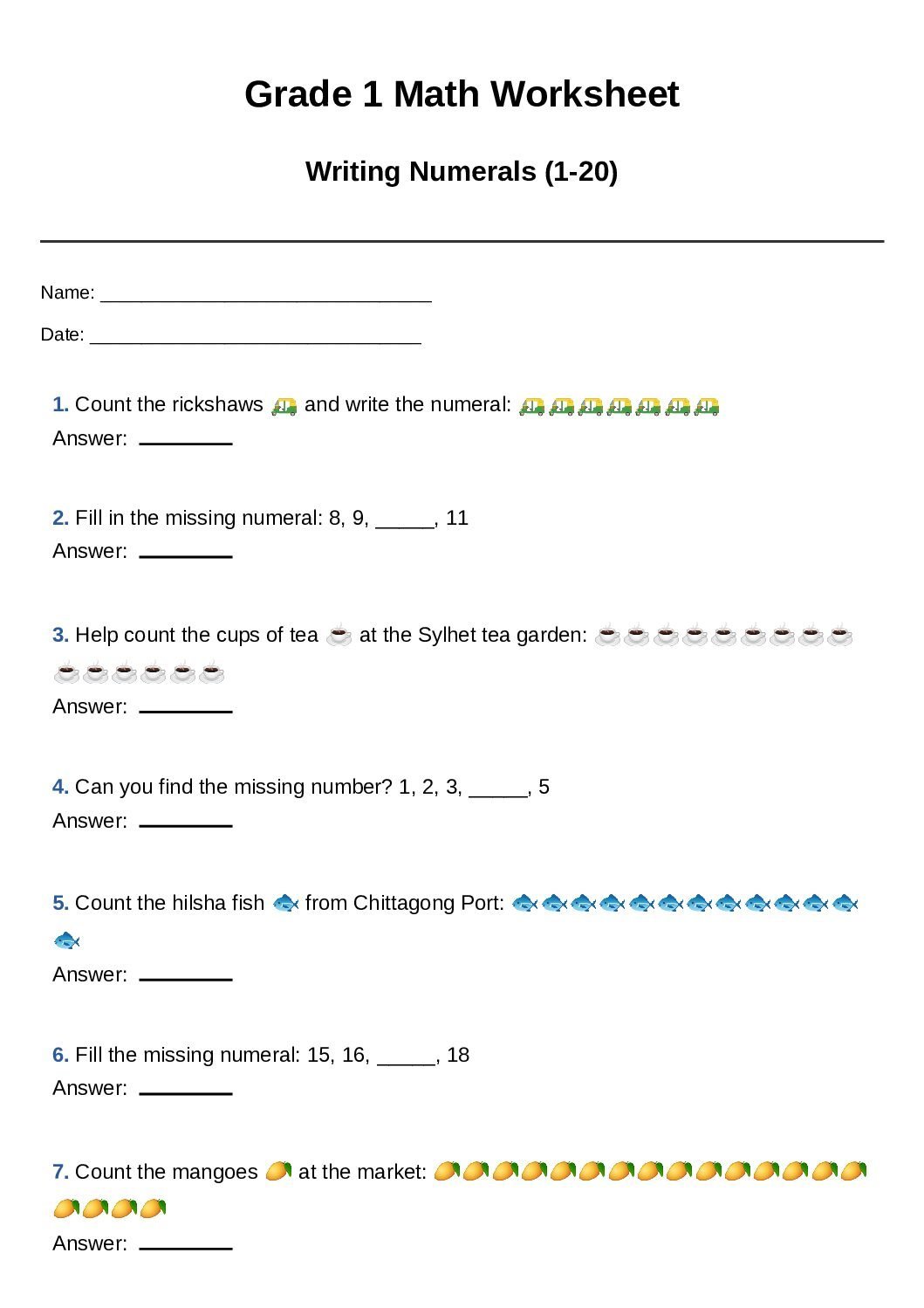 G1-Writing Numerals (1–20)-Count and Write-Fill the Missing