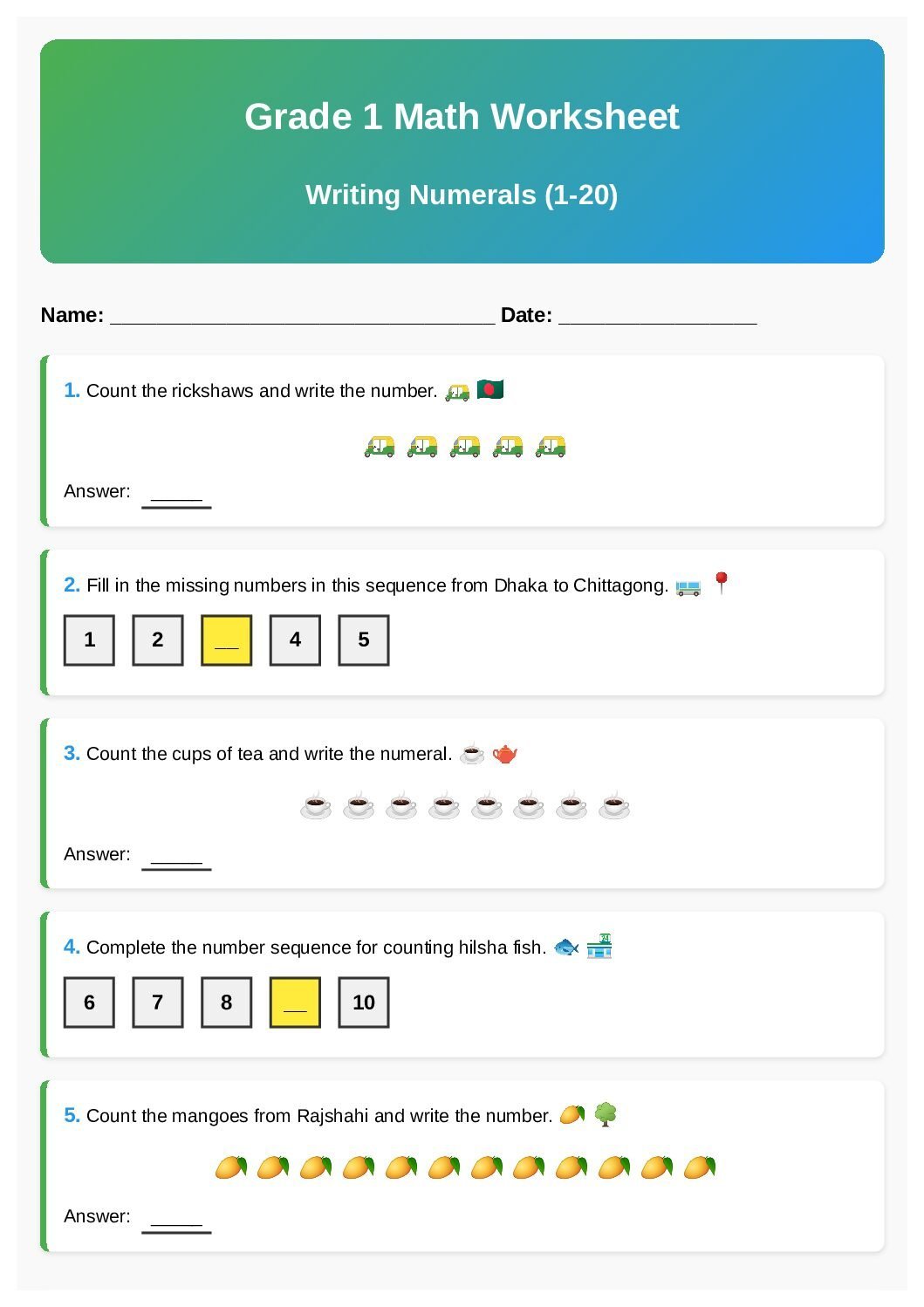 G1-Writing Numerals (1–20)-Count and Write-Fill the Missing