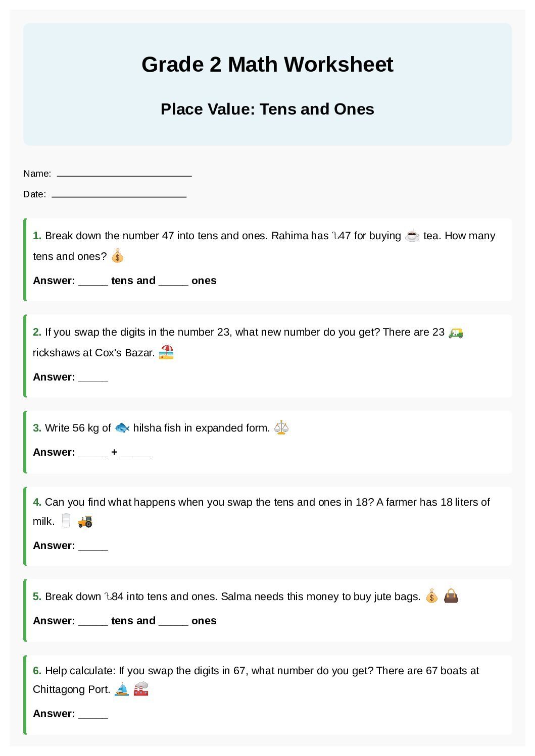 G2-Place Value (tens and ones)-Missing Number-Place Value Match