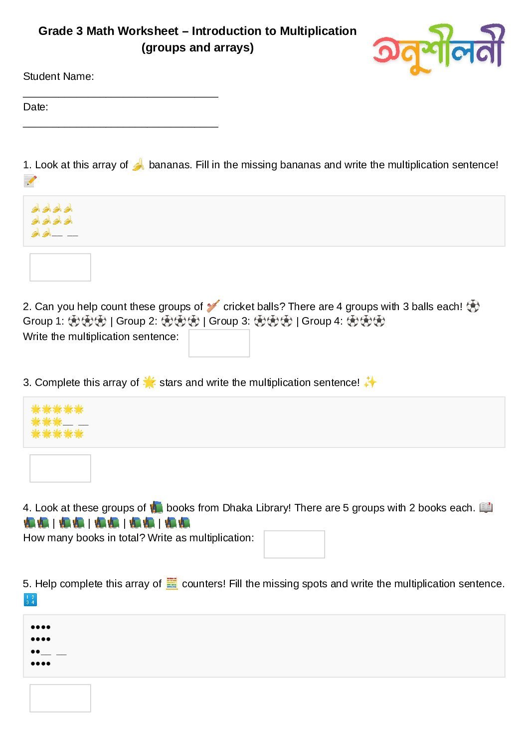 G3-Introduction to Multiplication (groups and arrays)-Fill the Array-Group to Sentence
