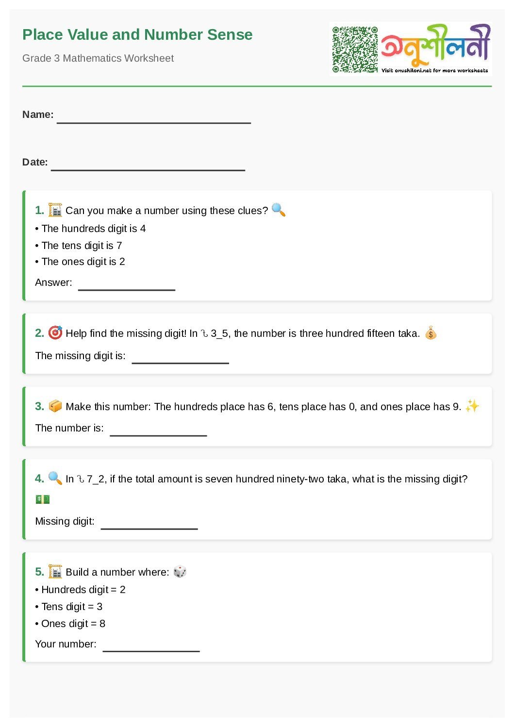 G3-Place Value and Number Sense (up to 1 000)-Make the Number-Missing Digit Puzzle