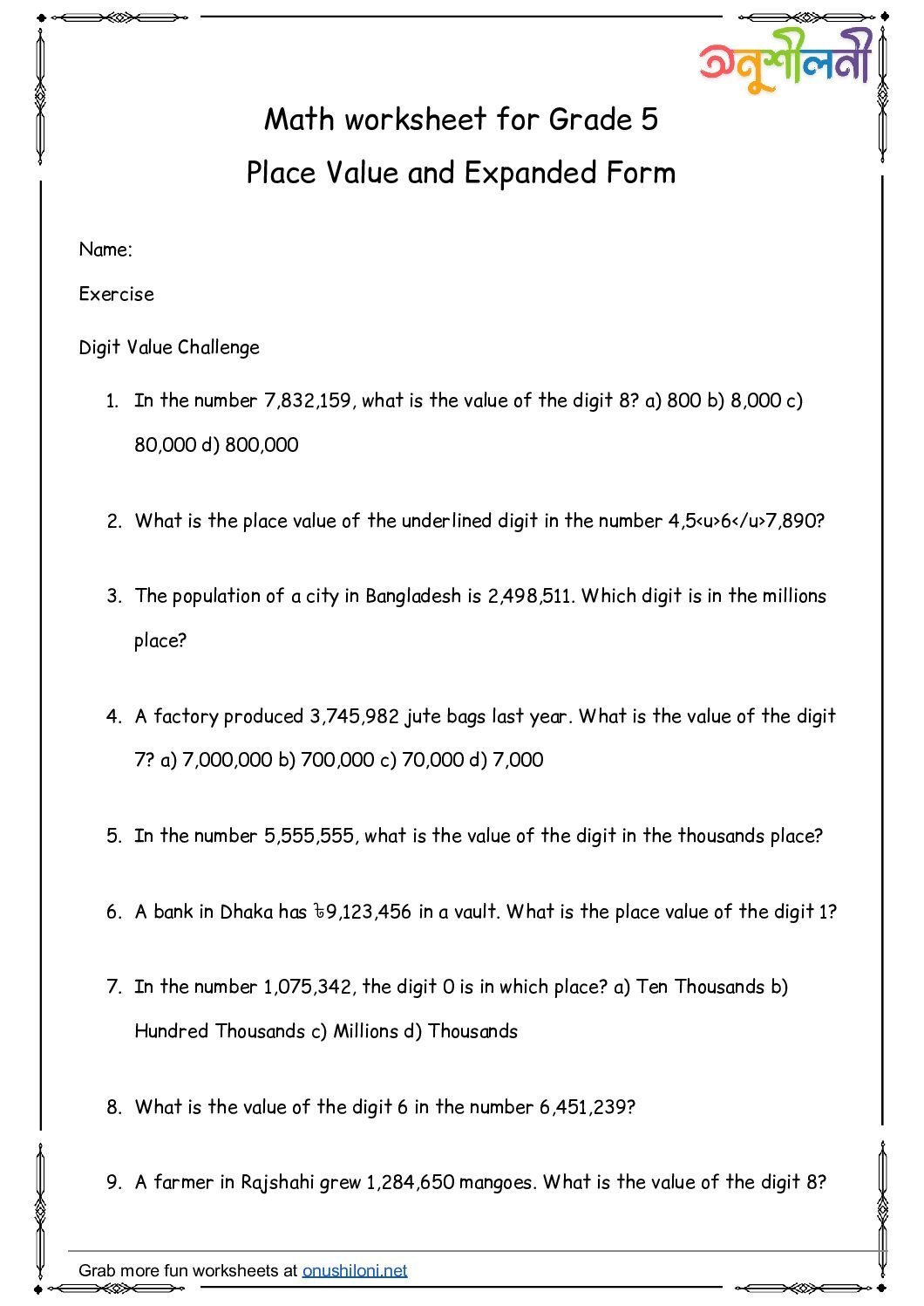 G5-Place Value and Expanded Form-Digit Value Challenge-Expanded Form Practice